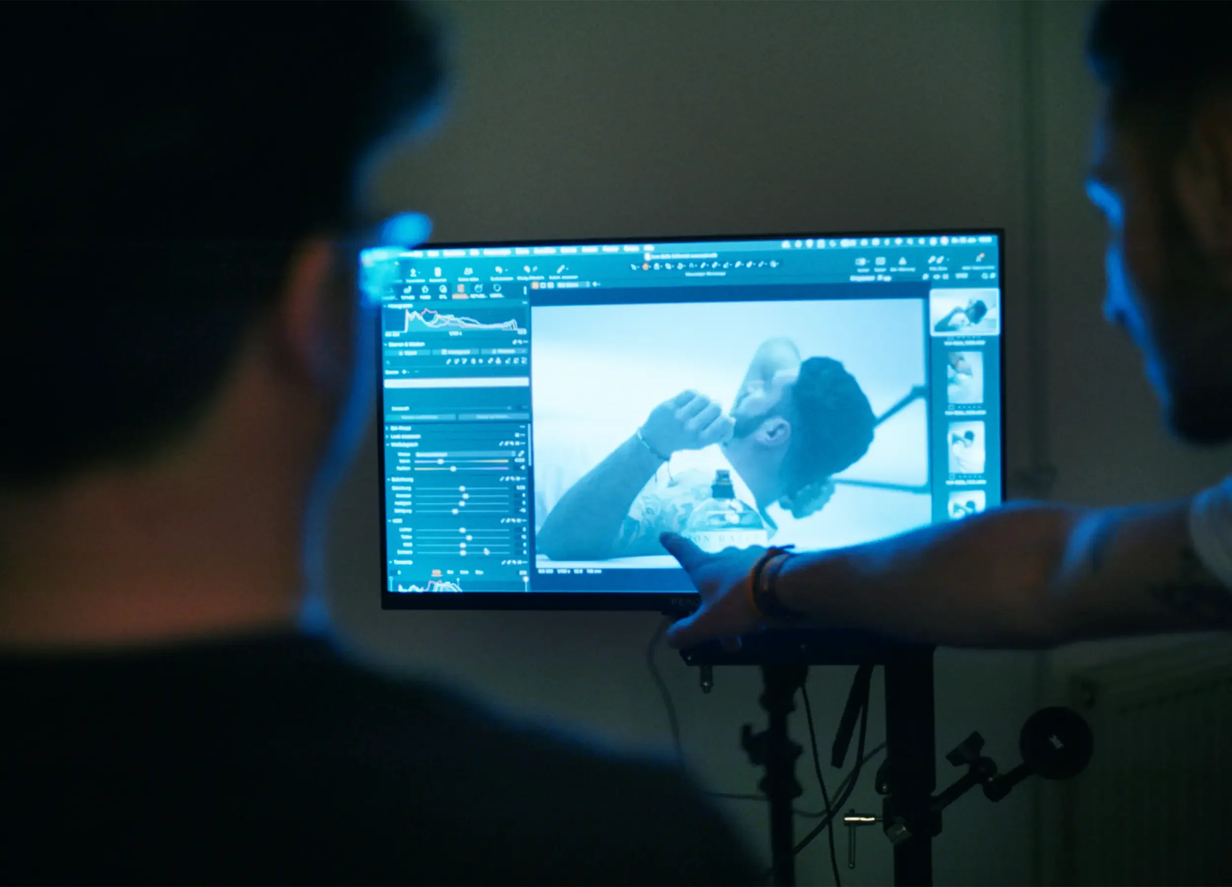 Jede Aufnahme landet in Echtzeit auf einem großen Display – direkt in der Bearbeitungssoftware. Hier ist der Industrie Standard der RAW-Entwickler CaptureOne. Alternativ kann man auch Adobe Lightroom dafür verwenden.